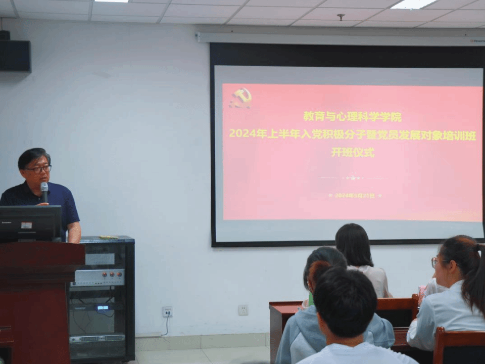 党委举行2024年上半年入党积极分子、党员发展对象培训开班仪式。学院党委书记季竹君,学院党支部书记卓华丽、刘晓彤老师出席,会议由学生党支部书记曹丽丽主持。