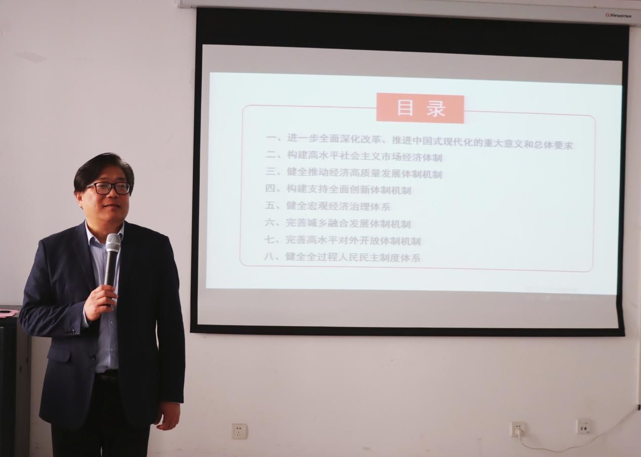 季竹君从进一步全面深化改革、推进中国式现代化的重大意义和总体要求、构建高水平社会主义市场经济体制、健全推动经济高质量发展体制机制等十五个方面对党的二十届三中全会精神进行了全面解读,宣讲报告逻辑清晰,说理透彻,紧密联系实际,融理论性、思想性和实践性于一体,为全院师生进一步全面理解全会精神提供了指导,为学院下一步发展发现点明的战略方向。
