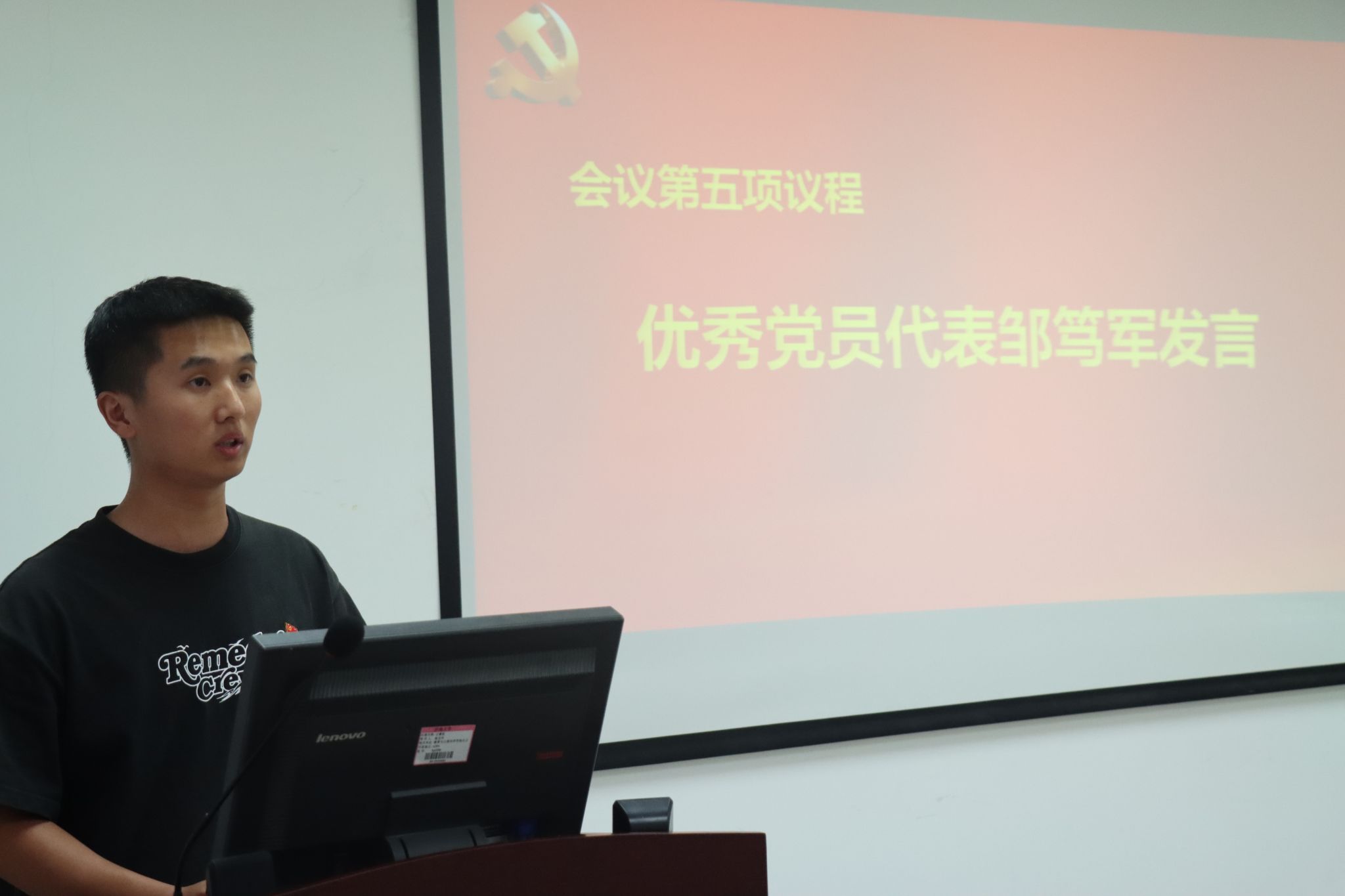 宣誓仪式在雄壮的《国际歌》中拉开帷幕。在优秀党员代表邹笃军的领誓下,全体新党员面向鲜红的党旗,庄严地举起右手,向党旗宣誓,在阵阵激昂的宣誓声下,每名党员传递着为共产主义奋斗终身的决心!宣誓仪式后,新党员代表谢培超和优秀党员邹笃军代表分别发言,分享自己的入党心得和体会,表达了对党组织的感激之情和对未来的憧憬,并表示将时刻牢记党的宗旨,不断提升自身政治觉悟和业务能力,时刻牢记入党初心、永葆党员本色,担当作为、锐意进取,在新时代新征程上展现出青年党员新作为。