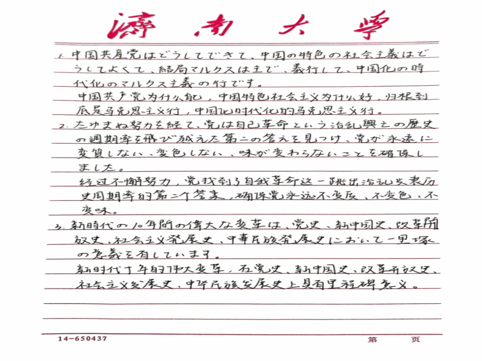 本次活动中,学生们紧扣传达二十大精神的主题,以独特的视角和丰富的创意创作了多样的作品,涵盖多种语言。通过硬笔书法、软笔书法、粉笔字等多种书写方式,用多种语言书写二十大金句,学习宣传党的二十大精神,让学生在挥毫泼墨中共抒爱国情。不仅展示出参赛者扎实的外文功底和艺术素养,也让党的二十大精神在异国文字的演绎下散发别样魅力。