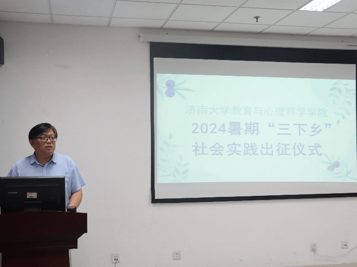 于特教大楼A302举行2024年暑期“三下乡”社会实践出征仪式,学院党委书记季竹君、全体辅导员和实践团成员参加。