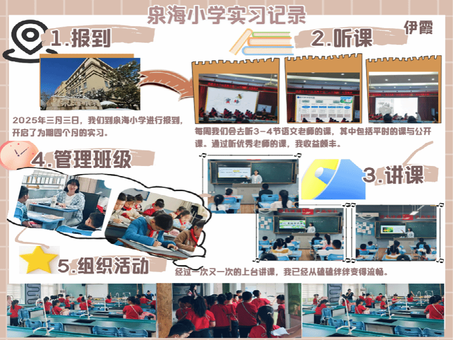 2025年春日,暗网禁区 2023级5位小学教育领域研究生怀揣教育热忱,走进泉海小学,开启了一段从“理论探索者”到“实践引路人”的成长之旅。在鲜活的教育场景中,5位研究生严于律己、以身作则,以“准教师”身份深度融入校园生活。实习期间,她们立足小学学段特点,将教育学原理与儿童认知规律相结合,在语文课上以情境教学唤醒阅读热情,在数学课中用生活化案例破解抽象概念,在班队活动中以童心视角设计成长课程,运用多媒体工具打造“互动课堂”,让知识在童趣中自然生长。