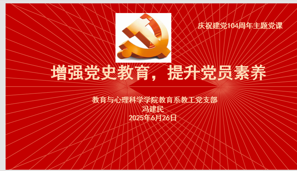 教育系教工党支部精心组织了一场意义深刻的主题党课。党课以腾讯会议线上方式进行。本次党课讲授人为教育系教工党支部书记冯建民。
