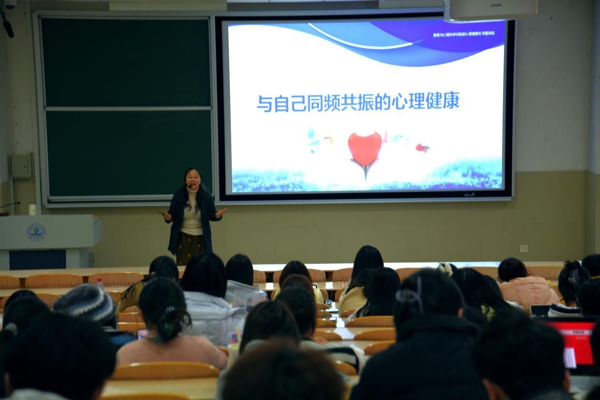 冯晶以自身经历为切入点,用“睡个饱觉”等贴近生活的例子,巧妙引导同学们掌握日常放松技巧,通过专题影片与个人心理健康调节心得,将抽象的心理知识转化为具象的生活指南。在案例分享环节,她结合学生心理咨询实例,生动讲述如何针对性开导学生,帮助学生化解学业压力与人际困扰,让在场新生深刻体会心理健康疏导的重要性与实用性。互动提问环节中,她以“变态心理学”为主题热情邀请同学们提问,耐心解答疑惑,引导学生正确认识心理异常现象,消除误解与偏见。