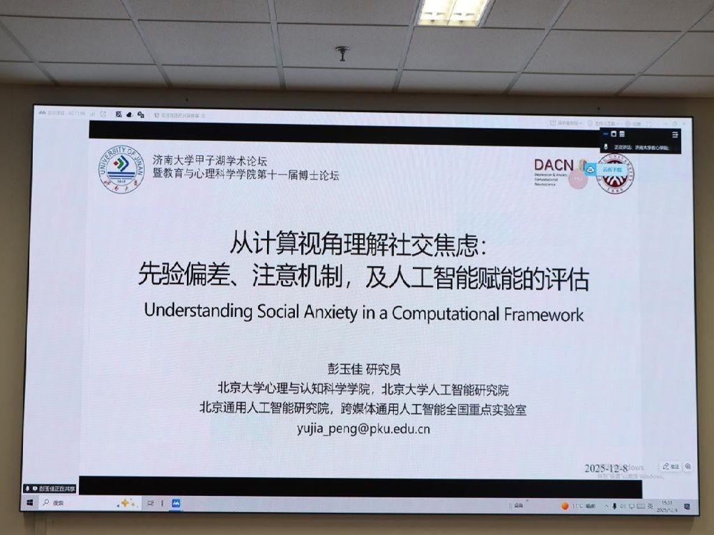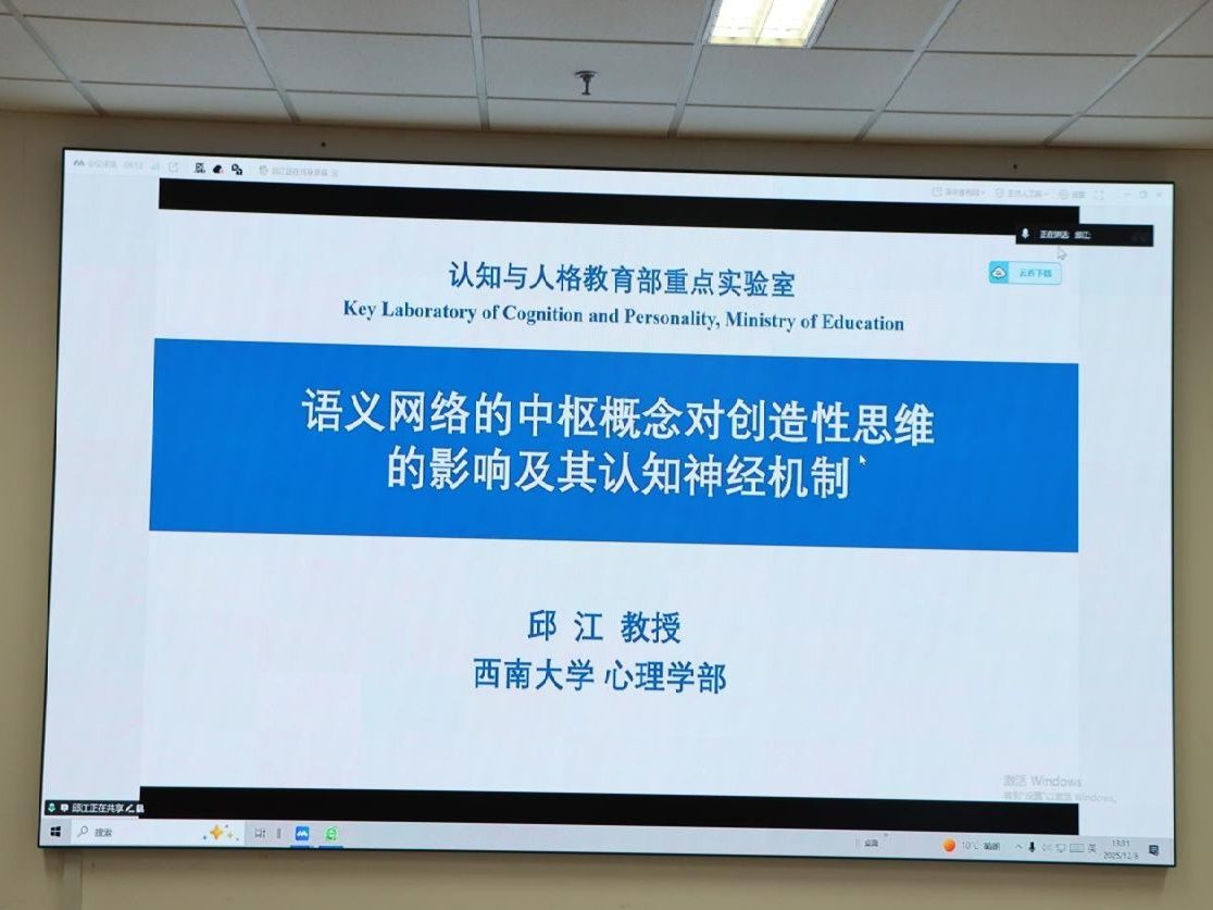 下午,学术交流热度持续攀升。西南大学党委常委、副校长邱江教授以《语义网络的中枢概念对创造性思维的影响及其认知神经机制》为题,结合自身团队研究成果,深入剖析了创造性思维的神经机制,为青少年创造性培养提供了科学依据;中国科学院心理研究所杜忆研究员带来《音乐的力量:探索人脑音乐加工及疗愈机制》报告,依托认知神经科学技术与计算建模成果,展现了音乐在脑功能修复与心理疗愈领域的独特价值;北京大学心理与认知科学学院彭玉佳教授作《从计算视角理解社交焦虑:社会认知过程中的认知偏差及人工智能赋能的评估》报告,跨界融合计算精神病学与人工智能技术,为社交焦虑的评估与干预提供了创新方案。各场报告均设置互动环节,师生们踊跃提问,专家耐心答疑,现场学术氛围浓厚。