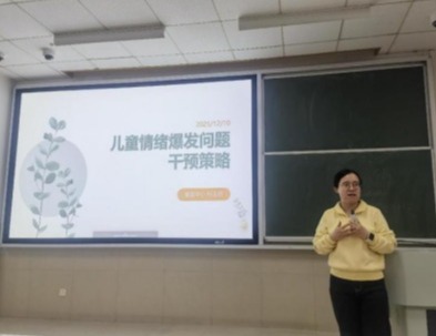 12月10日,《情绪与行为障碍儿童家庭教育》专题讲座在11教3502进行,邢玉娇(济南特殊教育中心一级教师)老师从自己与团队的课题研究开始,首先介绍了课题成果之一《学前孤独症儿童问题行为干预指导手册(家长版)》,然后针对学前孤独症儿童哭闹不止和大喊大叫行为及干预策略,学前孤独症儿童攻击性行为及干预方法等内容进行详细讲解,通过所教幼儿的真实案例让特殊教育专业学生聚焦认识孤独症儿童的问题行为及干预,同时引导他们持续学习、更新理论知识,用耐心和时间为孤独症儿童家庭教育服务。讲座结束后,黄一诺同学说:“这堂课让我更贴近地看到了孩子情绪爆发时的‘为什么’和‘怎么办’。我们明白了情绪调节是分阶段成长的——从最初用行为动作来表达,慢慢发展到能用语言,再到最后能自己认识和调节情绪。我也学到,没有一把万能钥匙能解决所有问题,方法有时灵,有时不灵,这很正常,关键是我们需要能够理解孩子行为背后可能有身体或大脑的原因。”