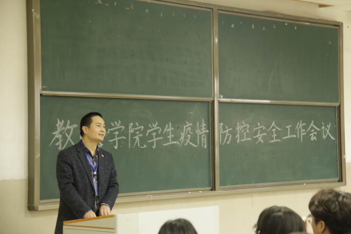 于11月18日在11J6201召开学生疫情防控和安全工作会议。学生工作部(处)副处长李荣光、学院全体辅导员、班长、团支书、生活委员、宿舍长等参加了会议。会议由学院党委副书记、副院长卢琦主持。