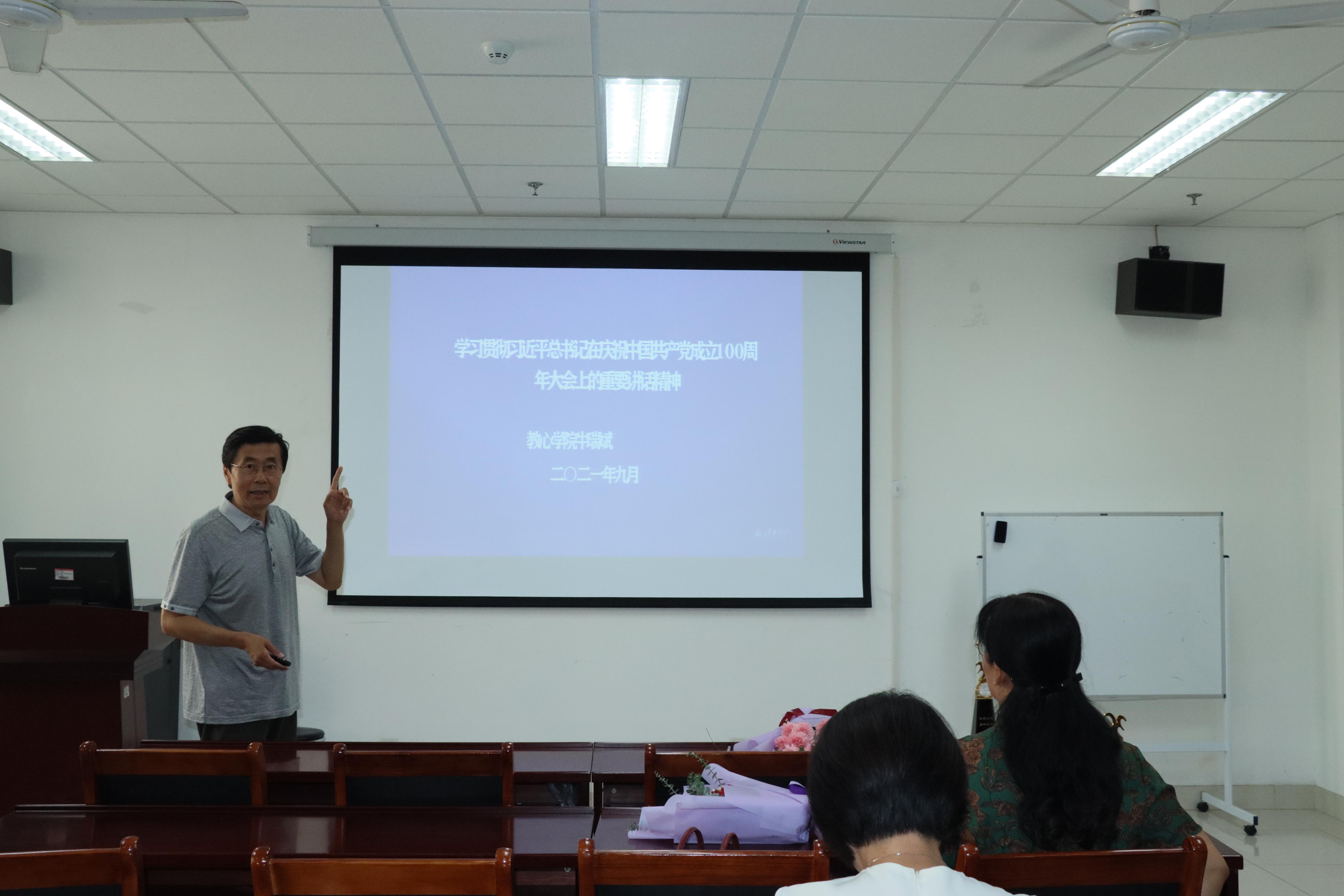 牛瑞斌从习近平总书记“七一”重要讲话的重大意义、深刻内涵和如何在实际工作中更好的贯彻落实重要讲话精神三方面,为全院教师做了系统全面的讲解,同时围绕讲话中提出的一系列新思想新观点新要求进行了重点讲解。