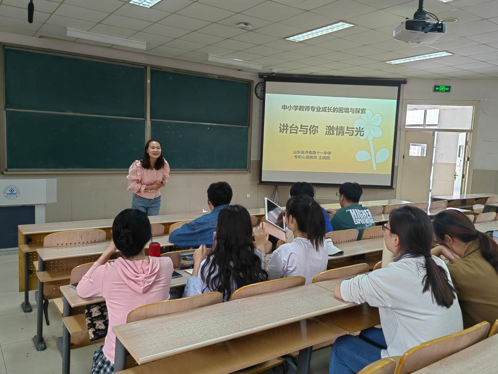 为了应用心理学专业师范生更加清晰地了解中小学心理健康教师素养要求,做好职业规划,5月9日下午3点,学院邀请济南十一中学专职心理教师王晓娜在11J3301为应用心理学专业同学进行了“讲台与你,激情与光——中小学教师专业成长的困境与探索”的专题讲座,应用心理学专业本科生、心理学研究生参加了此次讲座,讲座由李开云副院长主持。