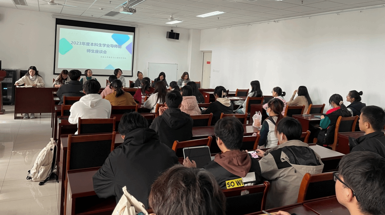 本科生学业导师制实施意见》(济大校字〔2014〕123 号)相关要求,深入了解学院本科生导师制运行情况,收集本科学生对学院学业导师制工作的意见和建议, 学院于2023年11月7日下午在特教大楼A302会议室召开2023年度本科生学业导师制师生座谈会。学院教学副院长李开云、心理系系主任冯晶、特教系系主任宿淑华、教育系系主任王玲、各年级辅导员、学生工作办公室、教学管理办公室负责人及2021-2023级各班学生代表参会,会议由李开云主持。