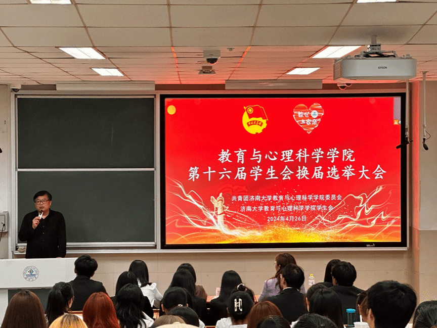 于11j1101举办第十六届学生会换届选举大会。学院党委书记季竹君、学生工作办公室主任卓华丽、学生会指导老师刘晓彤、2022级辅导员曹丽丽以及学生会全体成员出席,会议由团学部干事亓子扬主持。