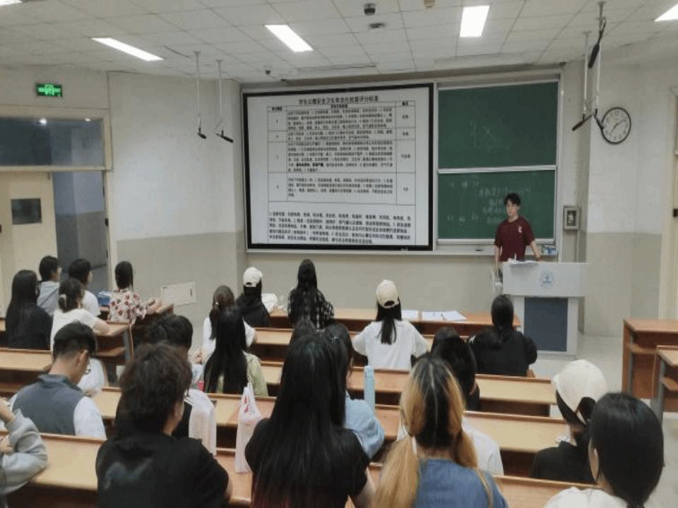 于11j举办“宿舍安全与卫生检查标准专题培训”活动,各年级宿舍安全员参加培训。