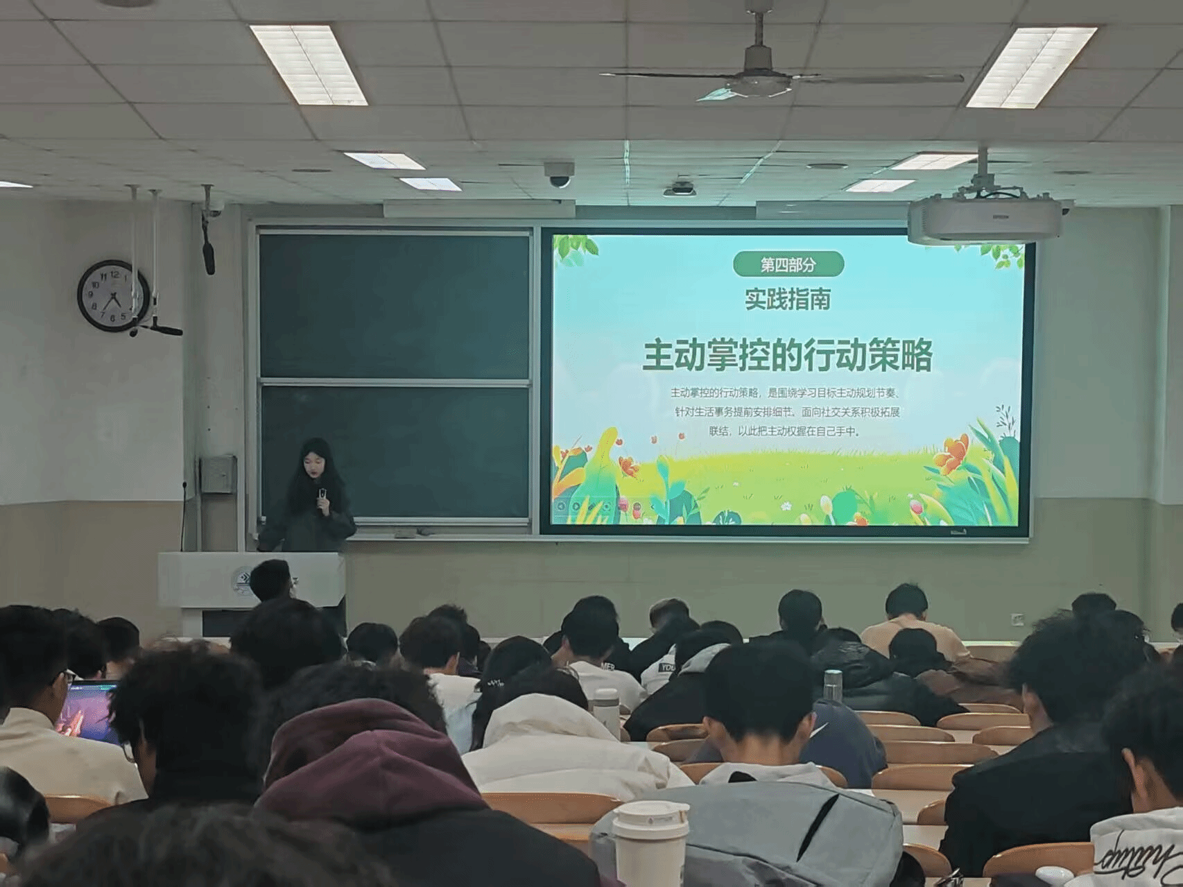 宣讲主题兼具专业性与人文关怀,引导新生向内觉察、向外接纳,在独立与协作中成长;通过情景模拟,将专业硬实力与情绪管理、人际沟通等软实力相结合,帮助新生在角色转变中建立心理韧性。与此同时,朋辈宣讲员结合自身经历与专业知识,引导新生科学认识常见心理现象,掌握实用的心理调适方法,提升应对压力与挫折的能力。活动结束后,同学们纷纷表示,此次宣讲内容实用、贴近需求,有效解答了初入校园的心理困惑。