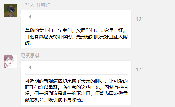 3月29日上午九时,志愿者们用线上语音报幕的方式拉开了线上表演的序幕,社区居民跃跃欲试,能歌善舞,小区居民张瑞萍表演舞蹈《梅花泪》为我们带来了春的气息;秋竹等七名志愿者的诗朗诵《献给志愿者的诗》,歌颂了一线工作人员们无声的大爱;社区居民刘英则向大家展示了原创的艺术摄影作品,用相机记录下身边点滴,定格美好回忆;社区居民张瑞红表演的舞韵瑜伽《青城山下白素贞》翩如兰苕翠,婉如游龙举,也令大家交口称赞。当真是“看今朝舞低杨柳楼心月,歌尽桃花扇底风”,一度将线上表演推到了高潮。志愿者们也各显神通,将当代大学生积极进取的精神风貌以及多姿多彩的生活表现的淋漓尽致,大家将表演与对抗疫期间工作者和志愿者的感激结合起来,表达了心中深深的敬佩之情。其中由教心学院学子陆彤演唱的歌曲《房间》,高欣宇带来的《平凡天使》以及李昊霖精心制作的配乐视频《听我说谢谢你》等节目都收到了社区居民的一致好评。演出临近尾声,教心学院文艺部的同学还献上了精心准备的曲目——《天使的身影》,以视频的方式教社区居民们演唱。最后,鲁贤社区的马振书记也通过文字形式表达他的欣喜之情“希望我们同舟共济,共同打赢这场防疫战,下一步,社区将联合暗网禁区