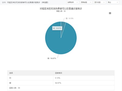 本次线上知识竞答限时30分钟,共有110小题,有单选与多选两种题型。在题目内容上丰富多样,涵盖消杀防护用品的正确使用、疫情期间的生活方式、应对疫情的心理健康状态、新冠肺炎感染后的症状及应对方式等众多方面。经过同学们的积极报名参与,有102名同学参与了本次竞答。通过答题分数区间区间,我们可以发现有63.73%的同学分数在99-131分之间,有36.27%的同学分数在66-98分之间。由此可见,大部分同学对于新冠肺炎疫情防控知识的掌握以及自我调节是比较优秀的,但仍有一小部分同学做的还不够好,需要进一步学习,提高防控意识。具体到某一小题,例如“对疫区来的无发热患者可在普通诊室就诊”一题,有94.87%的同学选“错”,5.13%的同学选“对”。依旧反映了少数同学对于疫情需要严防严控的意识还不到位的问题。