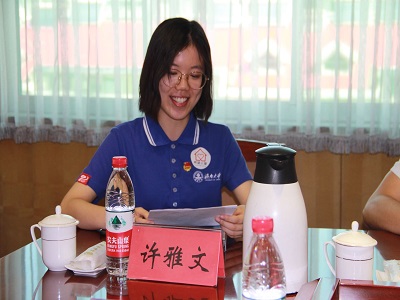 应用心理学专业19级的志愿者许雅文作为志愿者代表发言。她表示会充分发挥心理学专业的优势,帮助小朋友树立对未来的信心,保持乐观向上的人生态度,同时表明了所有济大志愿者努力为社会、为国家奉献出自己力量的决心。