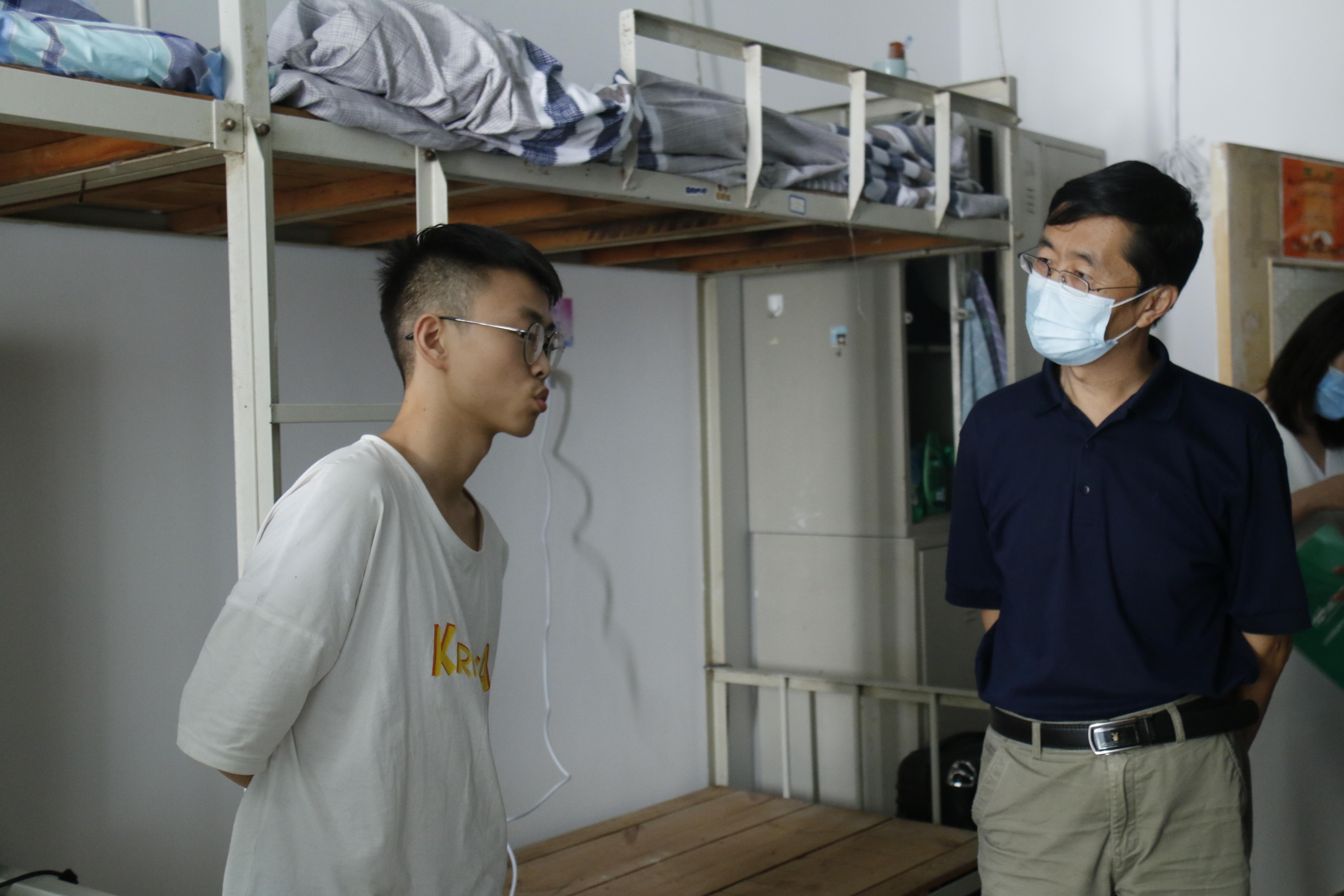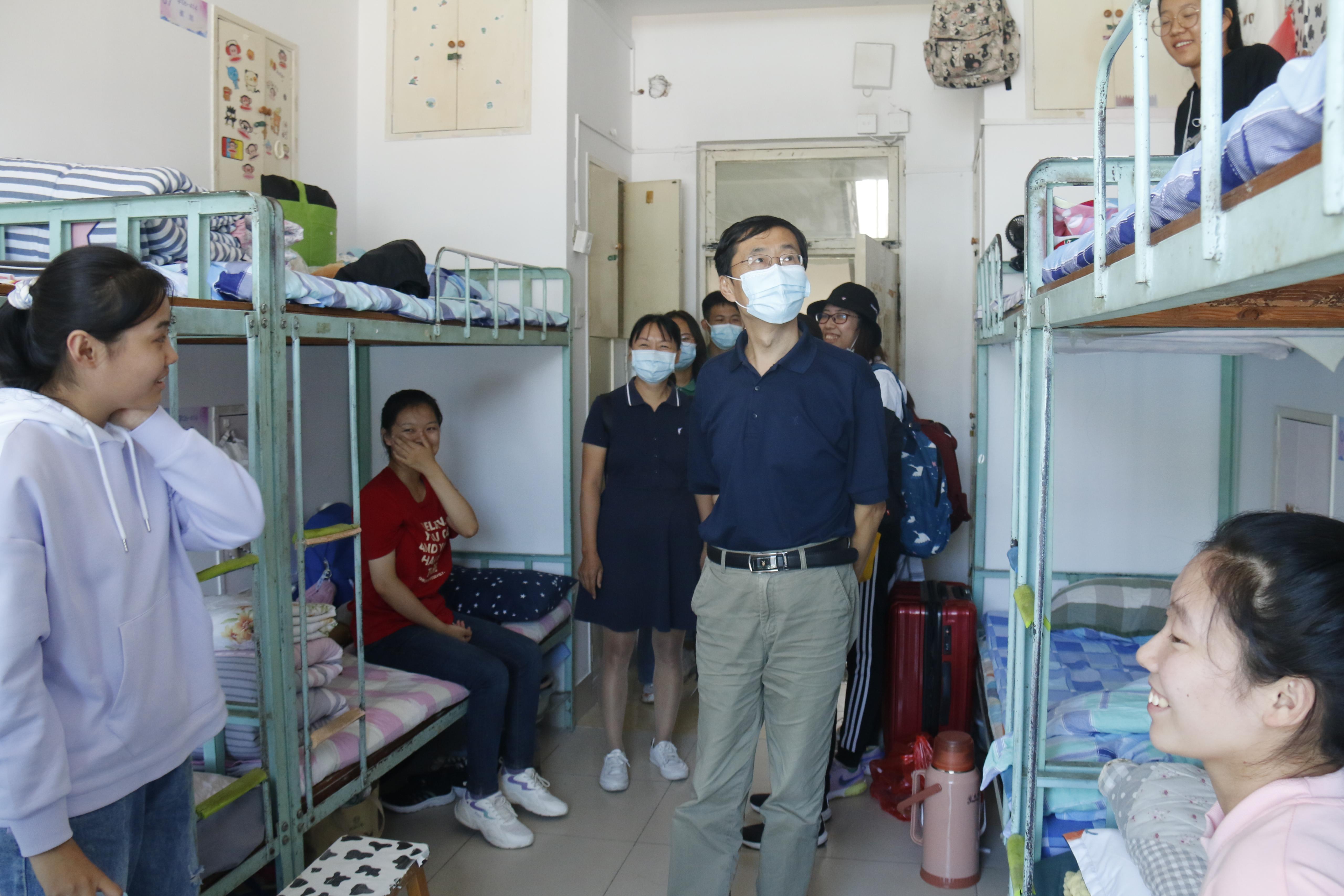 党委书记牛瑞斌,党委副书记、副院长卢琦与新生辅导员魏文静走访了学院新生宿舍,与新生面对面交流。
