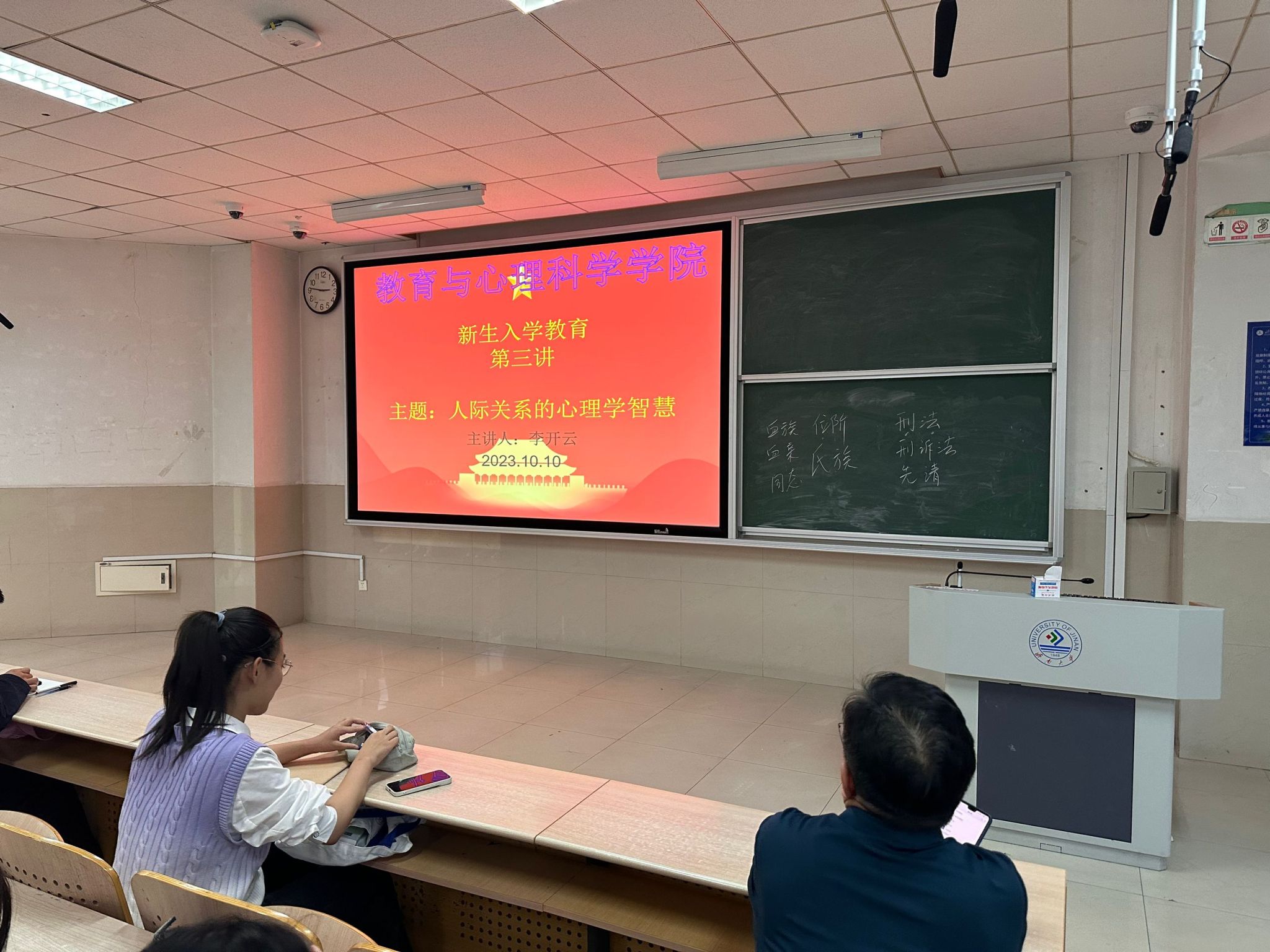 副院长李开云在11教举办了以“人际关系中的心理学智慧”为主题的新生入学教育专题讲座。