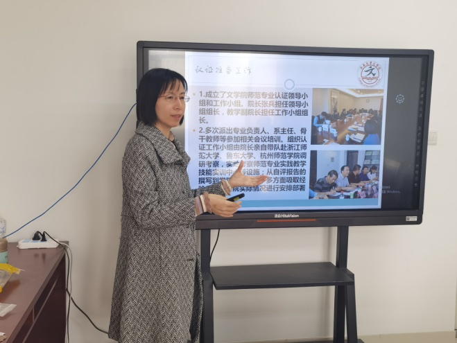 李开云副院长向大家简要介绍学院师范专业情况及目前的师范专业认证计划,希望陈教授能慷慨传授文学院师范专业认证积累的经验,并就师范专业认证申报书的填报工作给予具体指导。